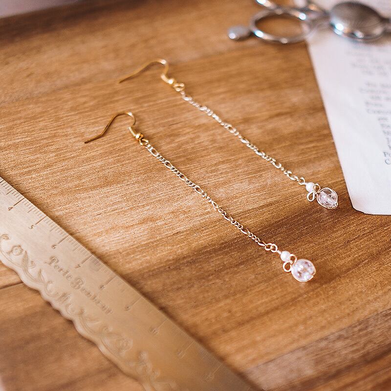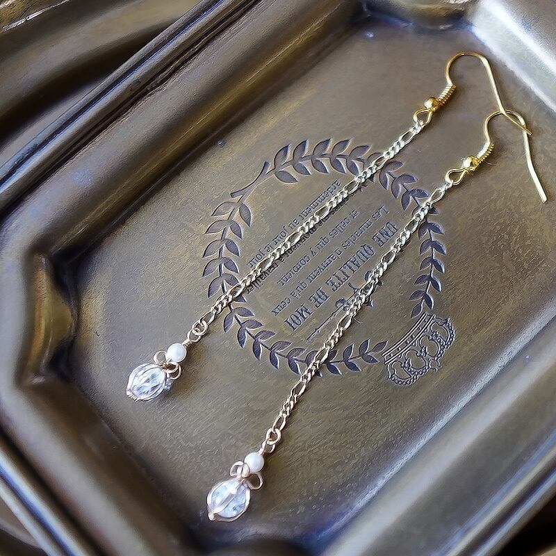 ■素材:天然石 クリスタル・淡水パール 金具チェーン 真鍮(14KGF・アレルギー対応金具変更可)