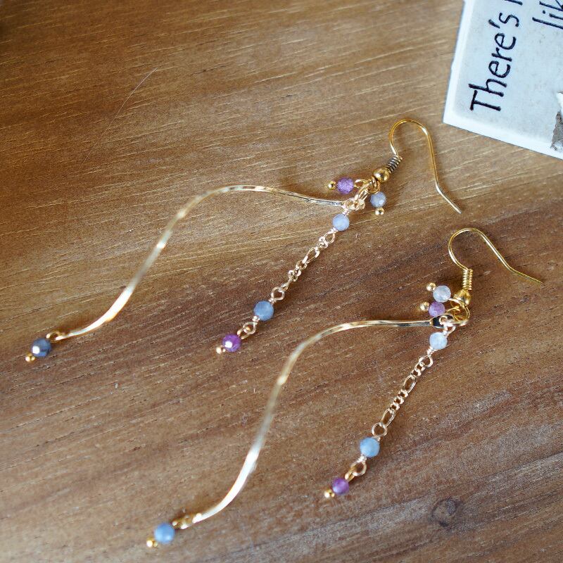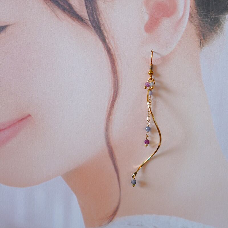 ひとつずつ意味合いの違う石をちりばめ、とってもよくばりなピアスに仕上げました。